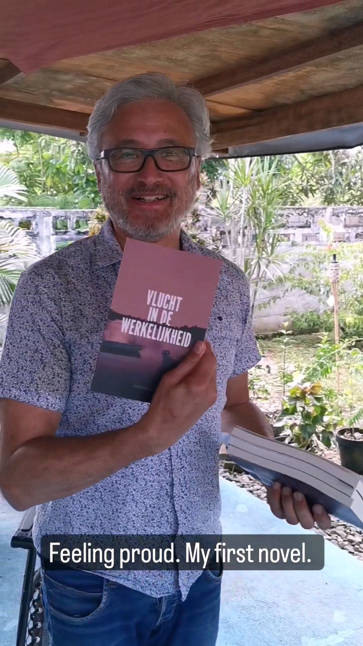 Vlak voordat mijn maand bezinningsverlof inging, keurde ik de (druk)proeven van mijn eerste boek en E-Book goed. Het heeft zo moeten zijn dat ik de eerste exemplaren die van de persen kwamen in ontvangst nam in het land waar het laatste hoofdstuk eindigt. Ik schreef mijn boek dit voorjaar af in Switi Sranan.